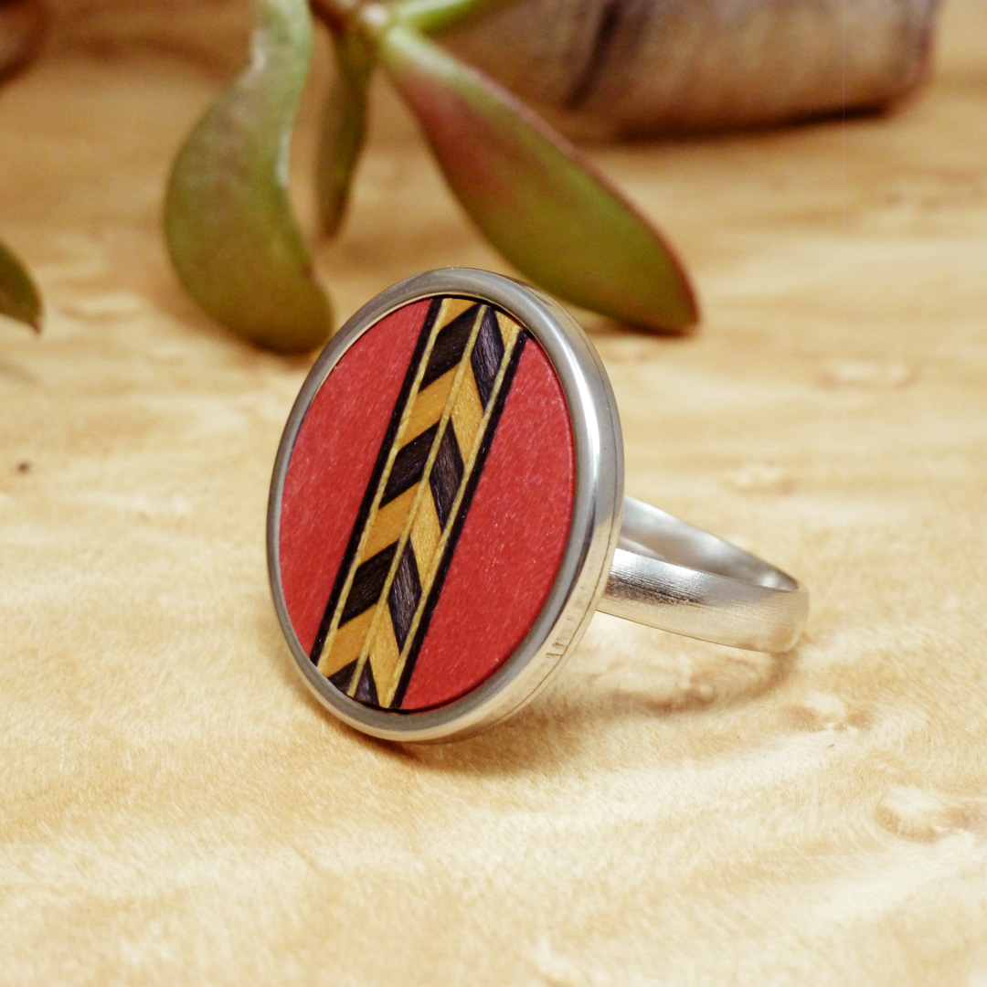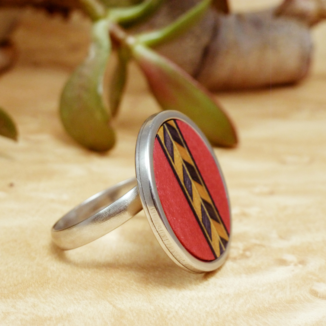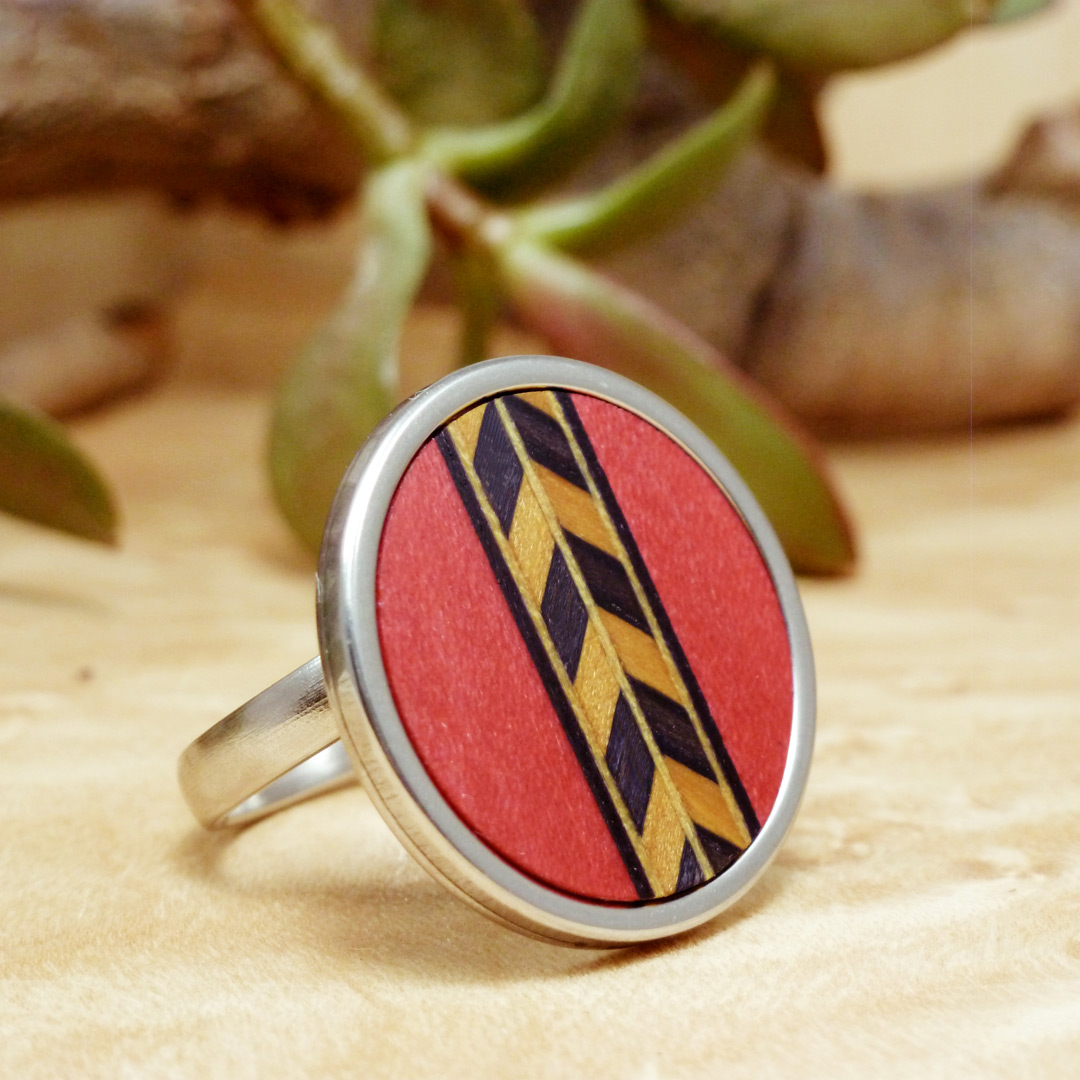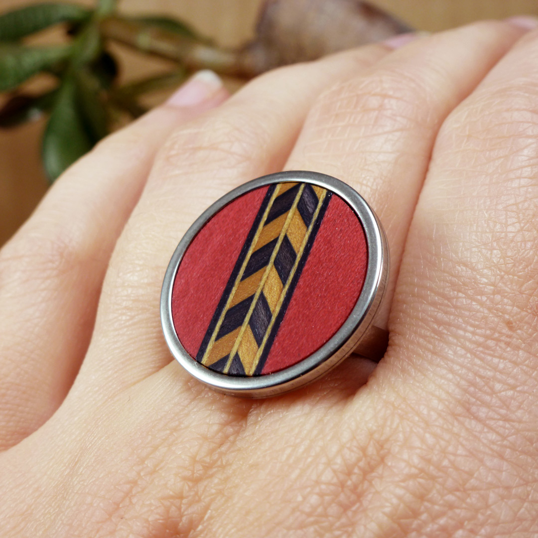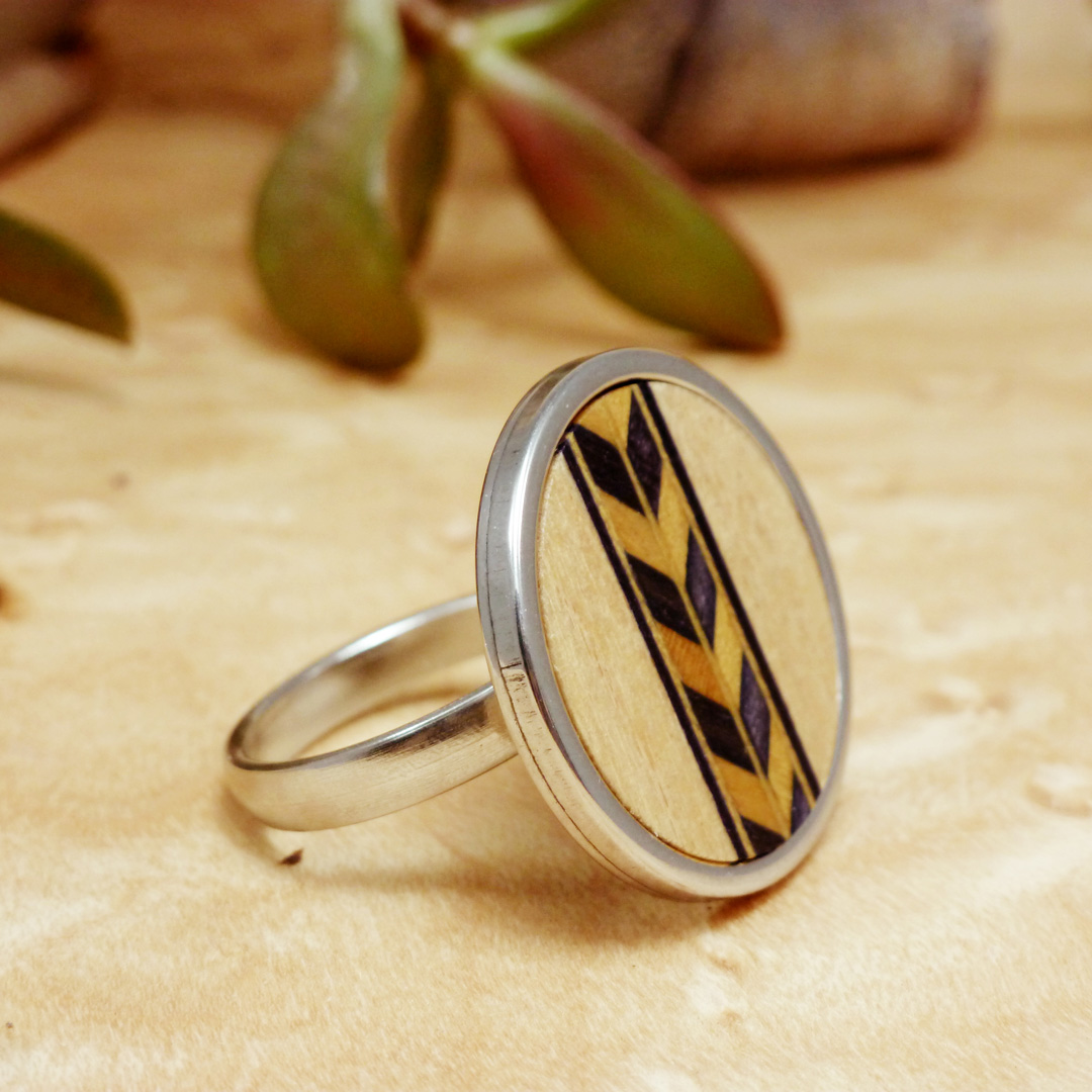 With its geometric wooden pattern and stainless steel finish, this ring is a must-have accessory. Whether youโre treating yourself or looking for the perfect present, this modern ring is sure to impress. Order yours today!