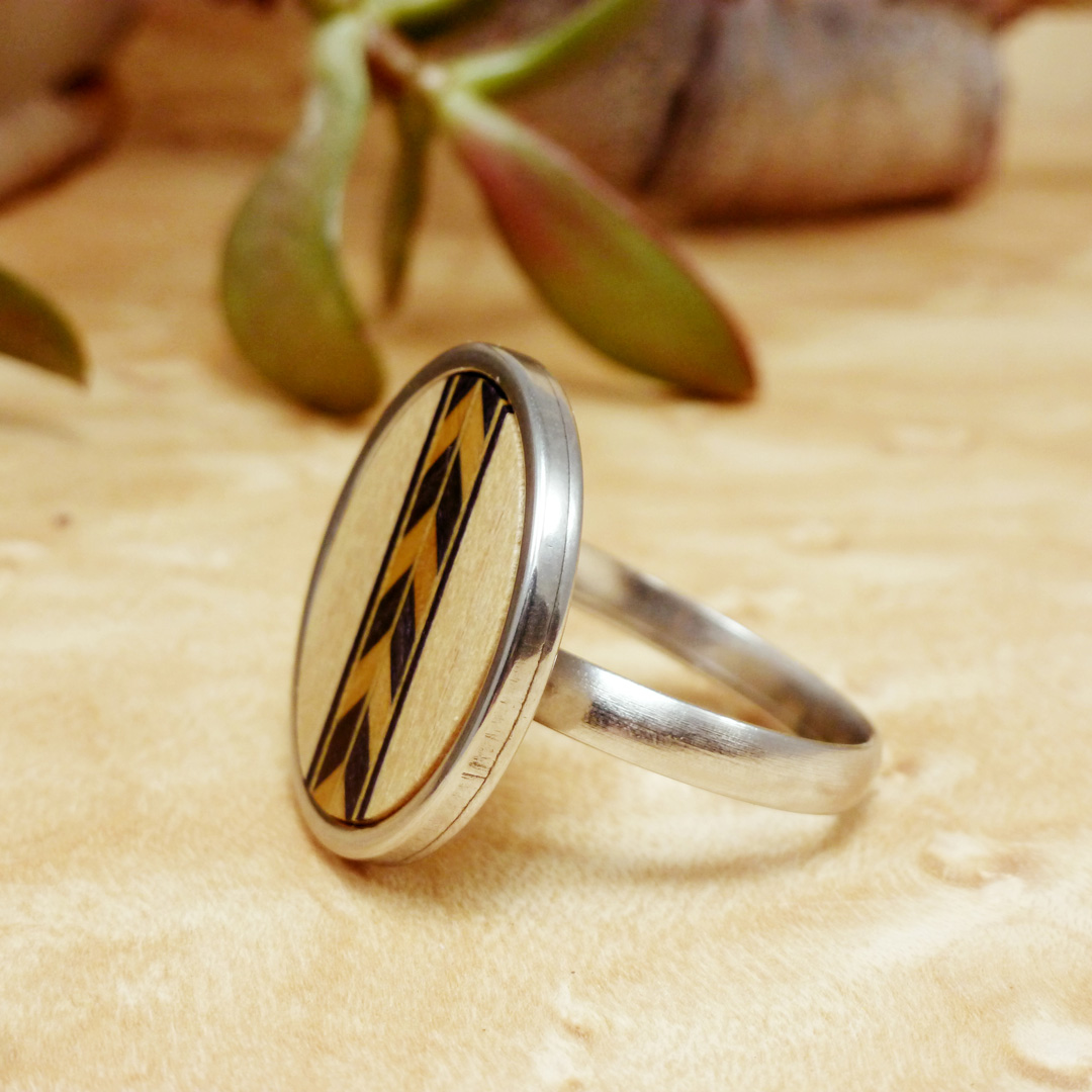 Modern Metal Ring with Wood Inlay โ A Statement Piece
