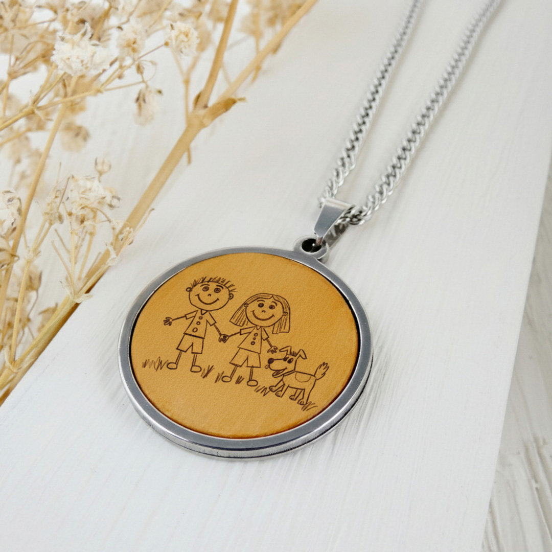 I can turn your child’s favorite drawing into a sweet keepsake for a mother or grandmother. Send me a simple photo or scan of the drawing, and I’ll engrave it as a Custom Engraved Design. The wood adds warmth, the stainless steel keeps it sturdy, and the result feels personal and heartfelt. It’s a lovely way to carry a bit of childhood close to the heart—perfect for birthdays, Mother’s Day, or “just because.”