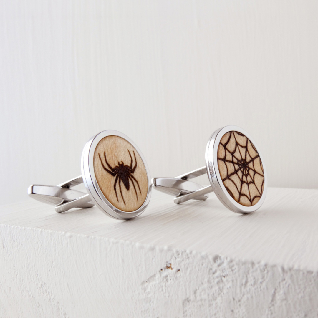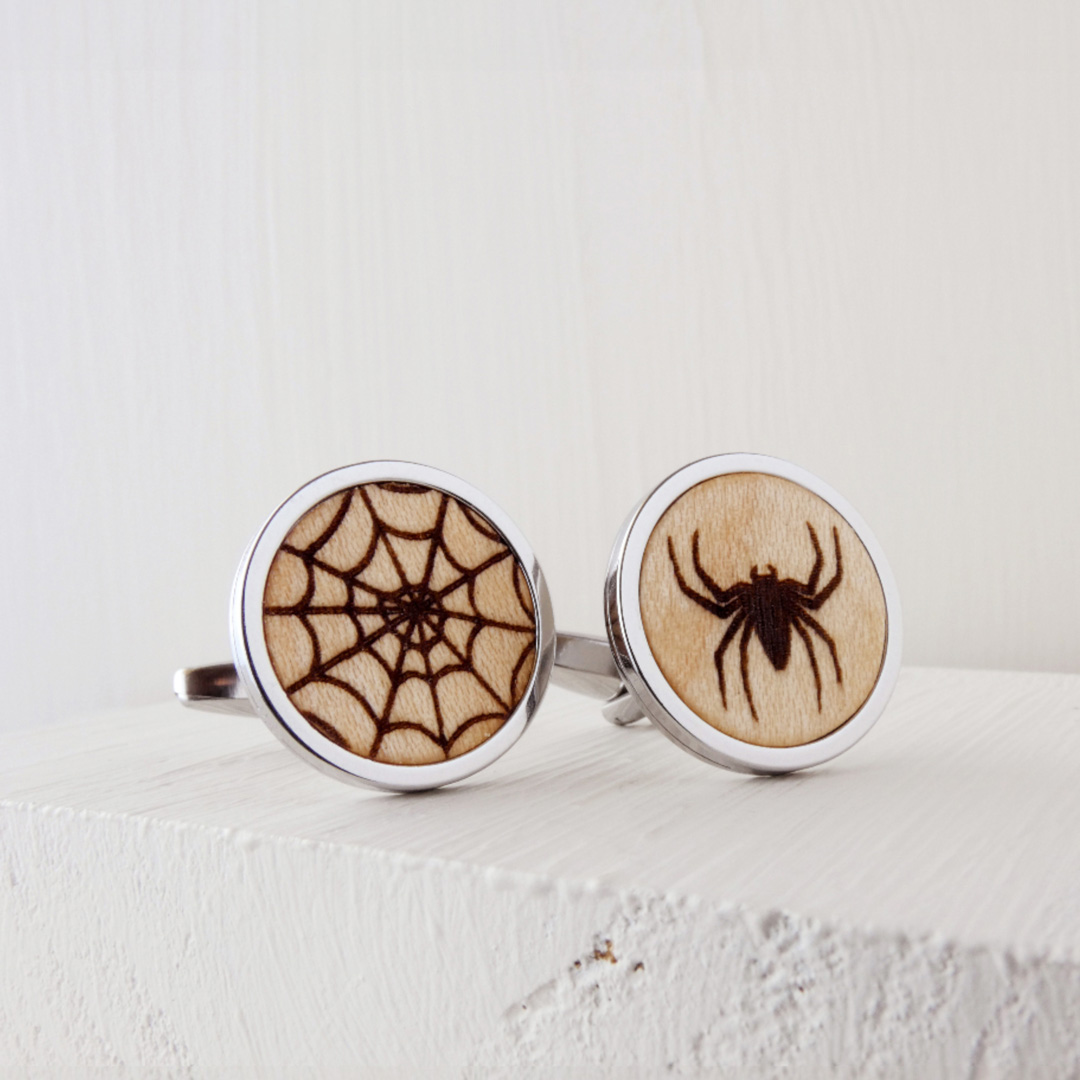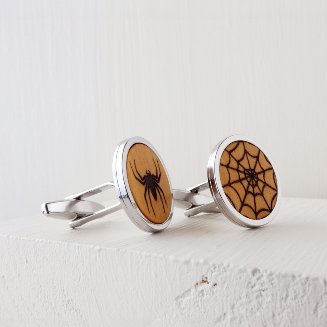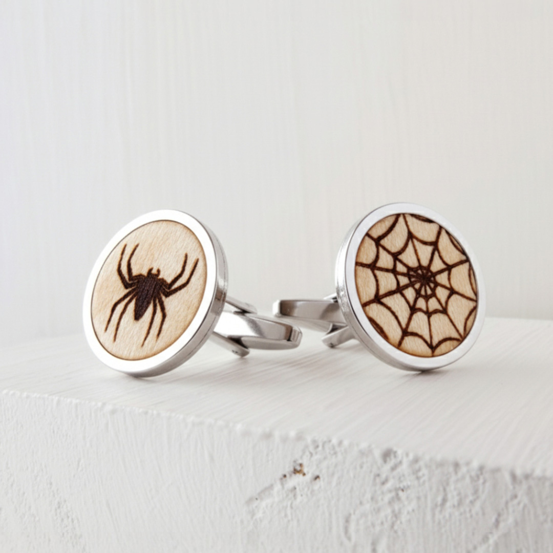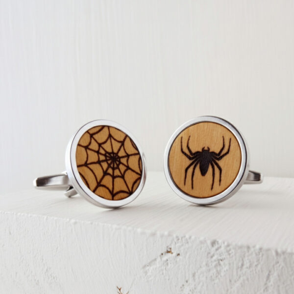 Unique Wooden Cufflinks – Spider and Web Designs for Men