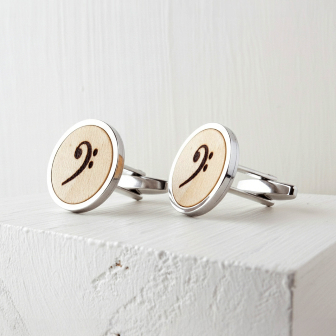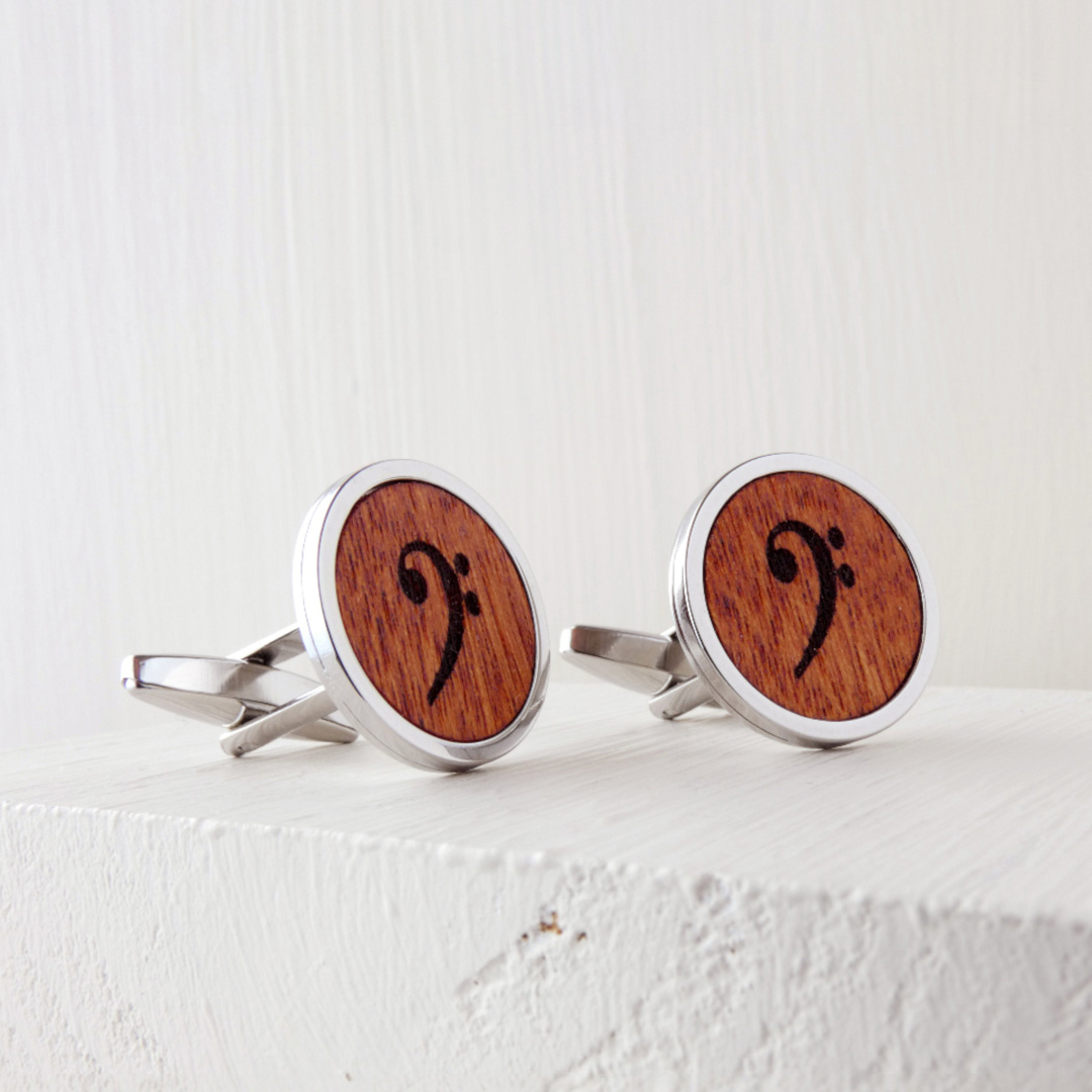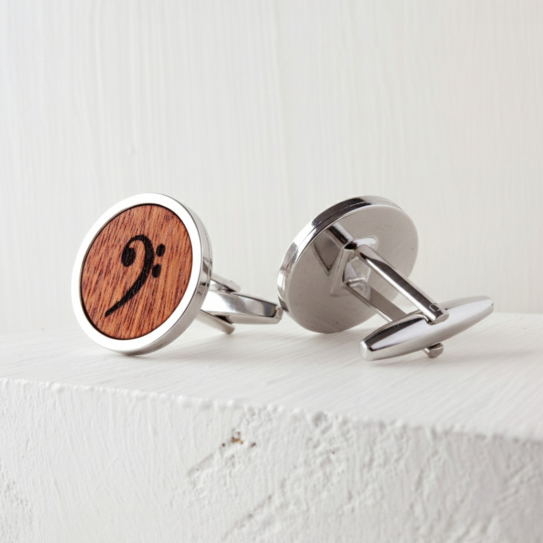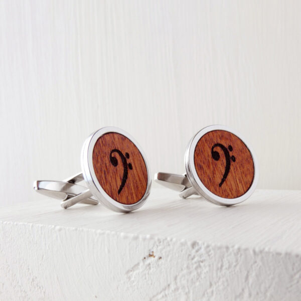 Wooden Bass Clef Cufflinks – Gift for Musicians
