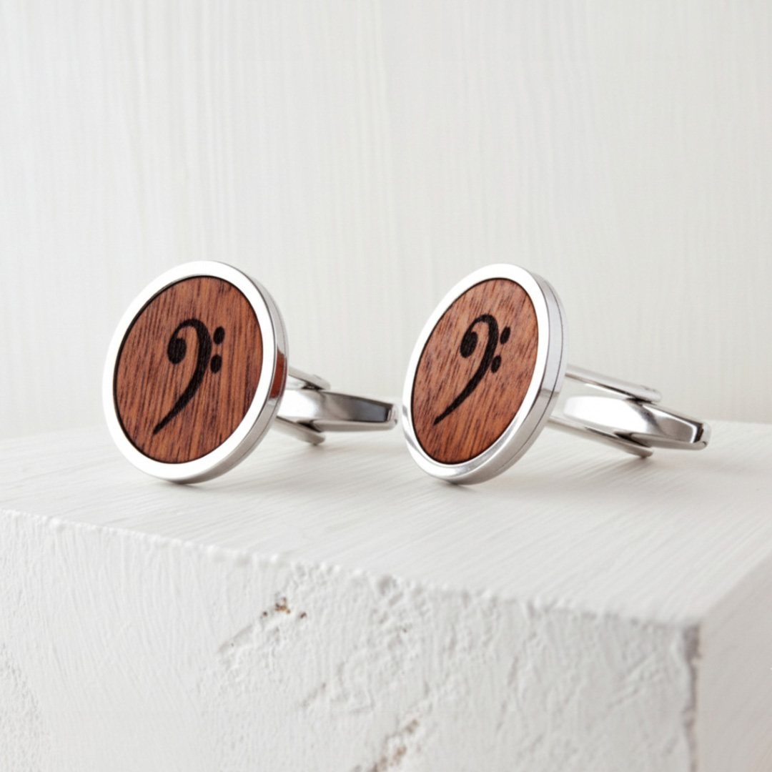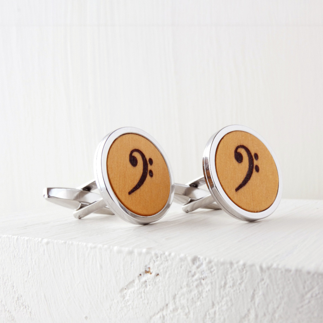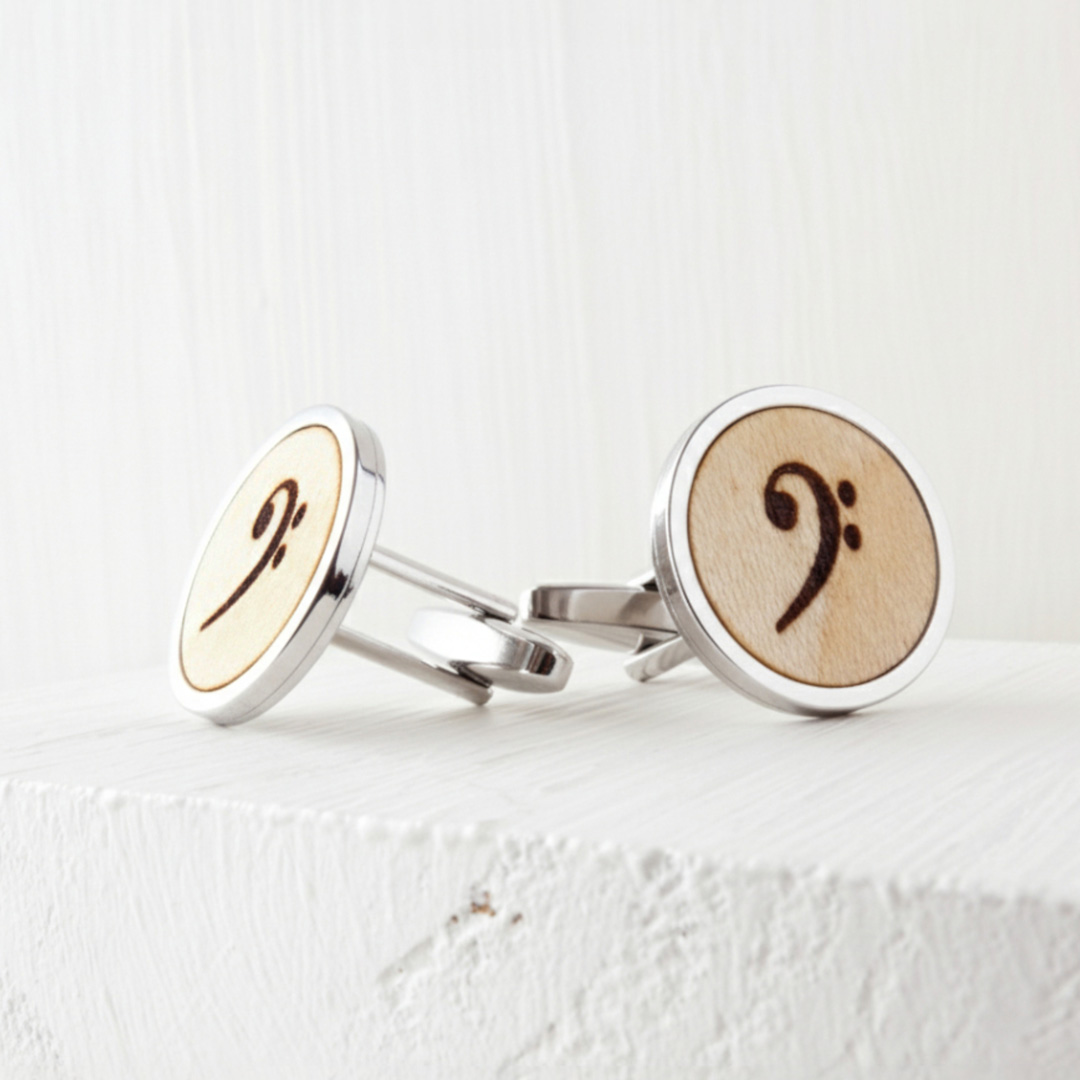 Wooden Bass Clef Cufflinks – Gift for Musicians
