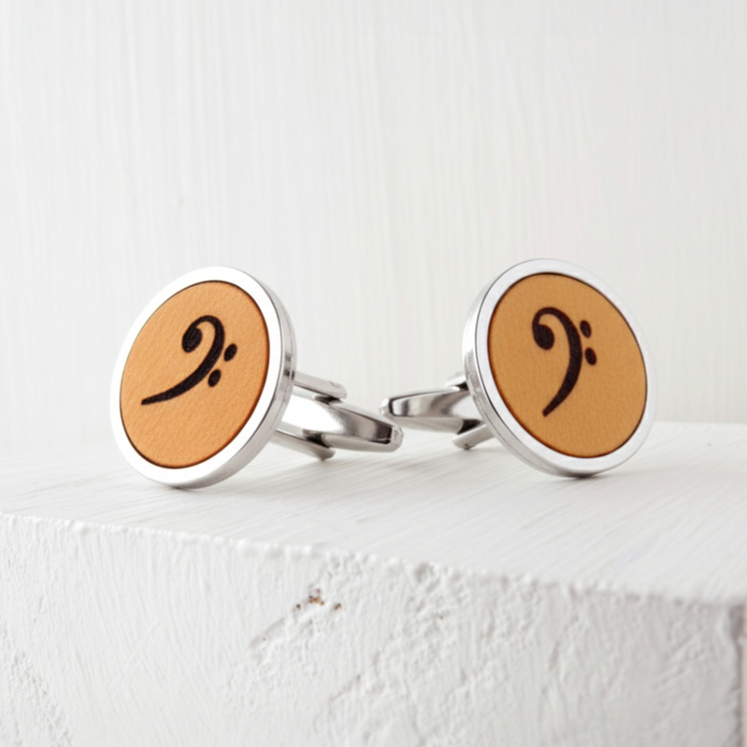 When you want a smart, music-themed accessory that looks grown-up (not gimmicky), my wooden bass clef cufflinks are a perfect fit. I handcraft each pair myself, one by one, so they feel special—like a tiny secret nod to the joy of low notes. Choose from natural sycamore, boxwood, or cedar. The stainless steel base keeps them strong and shiny, while the engraved bass clef adds a clean, timeless look that suits a suit or a crisp shirt.