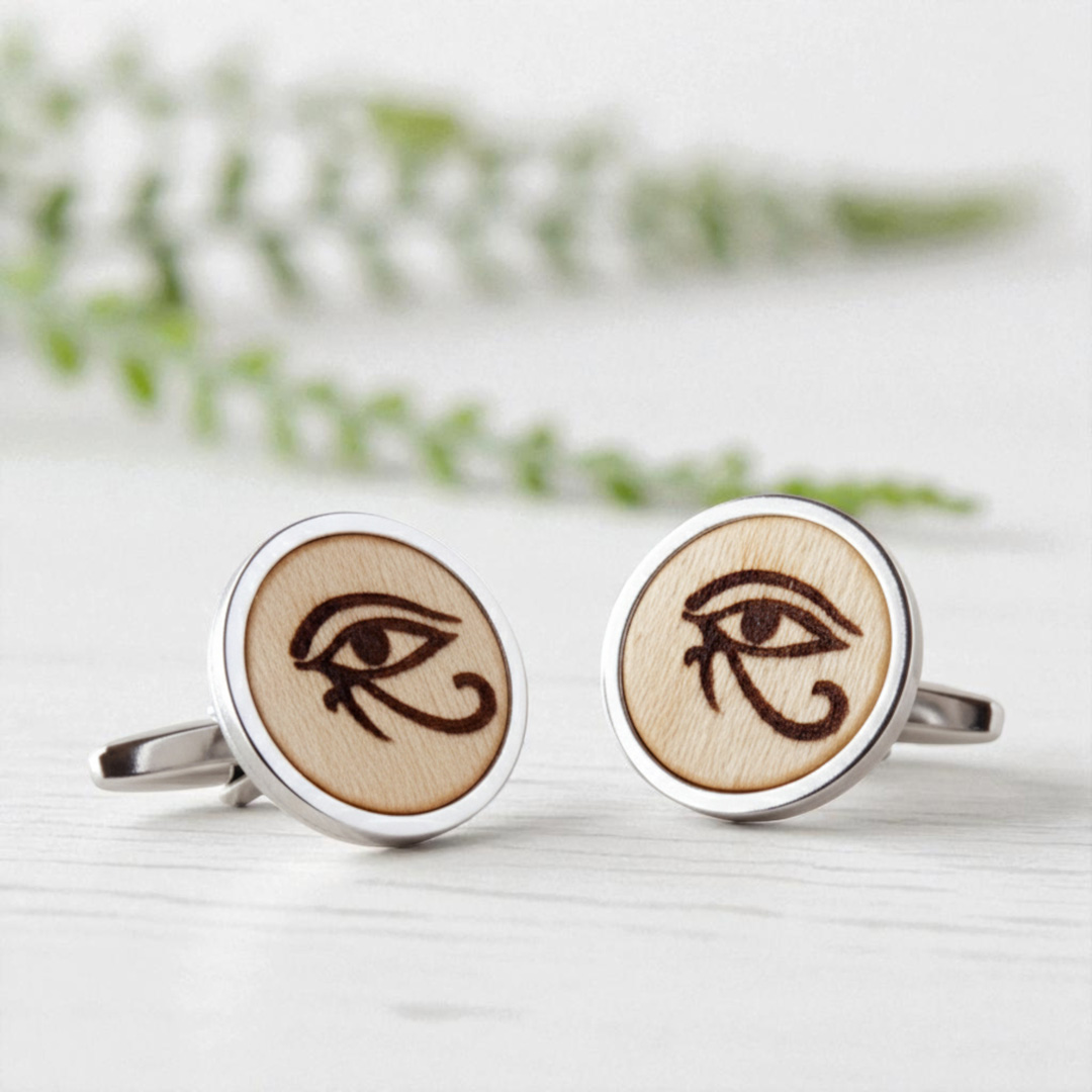 Wooden Eye of Horus Cufflinks – Handmade & Gift-Ready