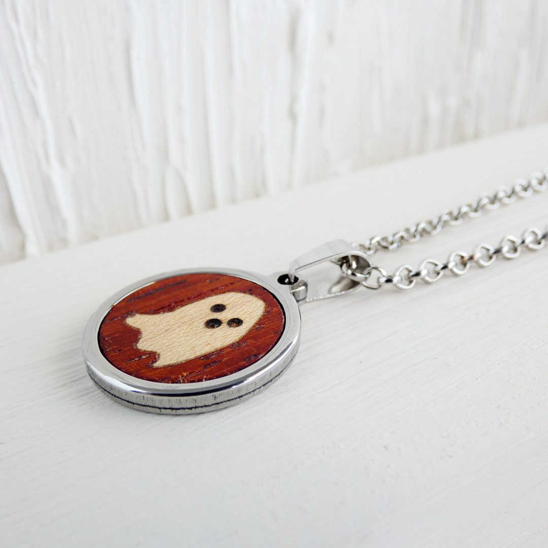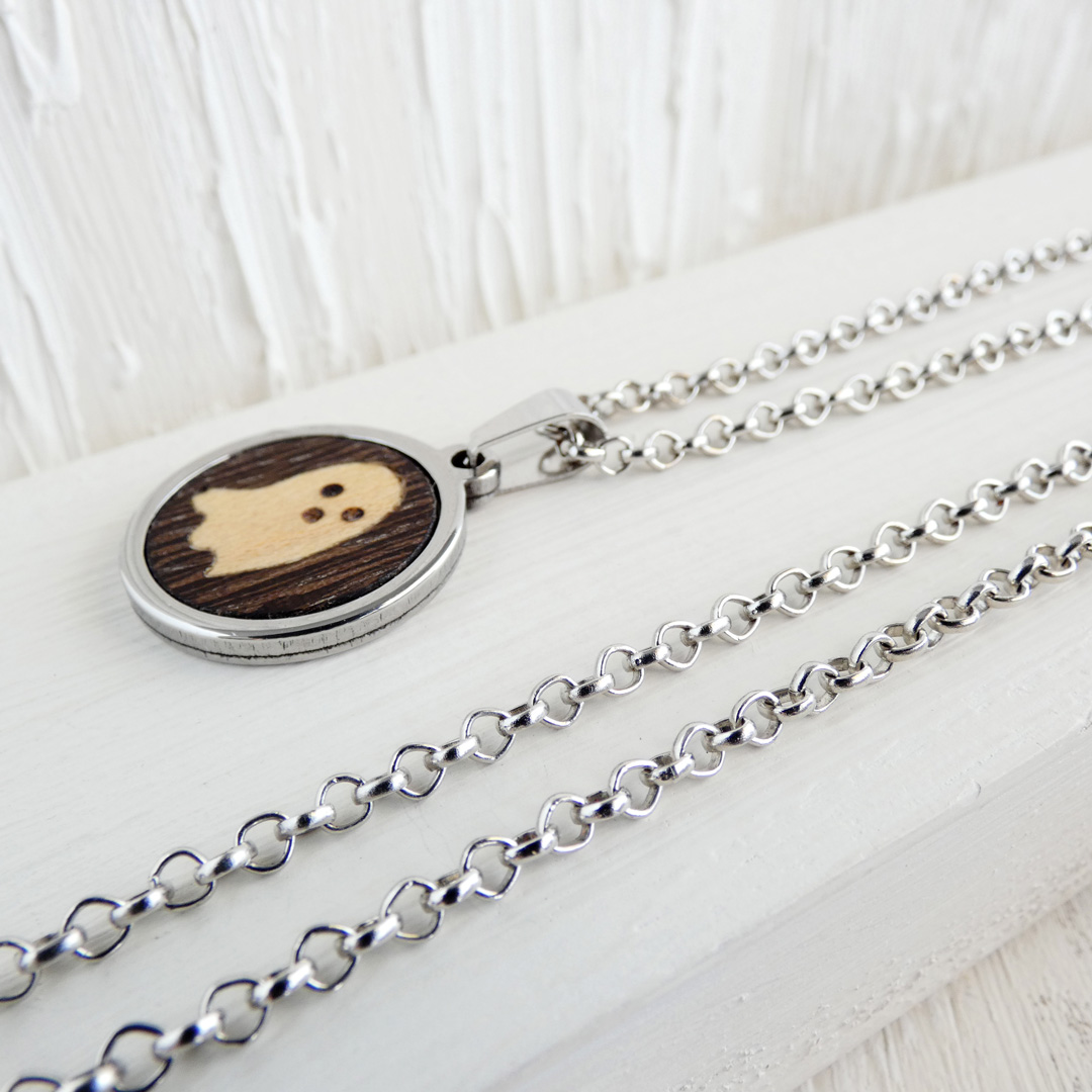 Wooden Ghost Necklace – Cute Handmade Halloween Jewelry